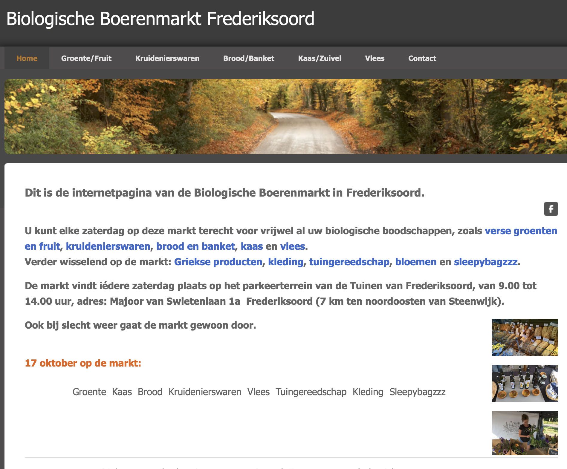 Elke zaterdag van 9.00 u tot 14.00 u. o.a.groente, fruit, brood, kaas, vlees, kruidenierswaren